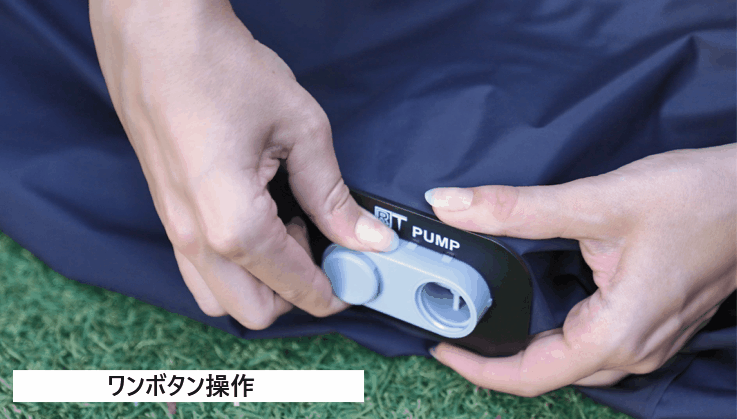 ワンボタン、たった60秒で空気入れ完了!ポンプや複雑な作業は一切必要なし。非常にシンプルな操作により、60秒で空気入れが完了します。専用の空気入れポンプや、複雑な操作の必要なく、ワンボタンで本格的なソファーが出現!