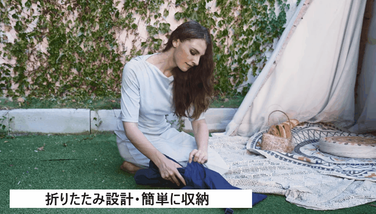 使用後も、排気口を開けて空気を抜き、折りたたんで収納バッグに入れるだけの簡単操作。