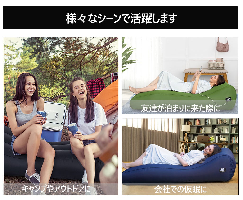折りたたみ、持ち運んでアウトドアなどで利用できる「エアソファー」や「エアベッド」。ねそべって読書やお昼寝、リラックスタイムを楽しんだり、腰かけてくつろぐためにぜひ活用したいアイテムですね!