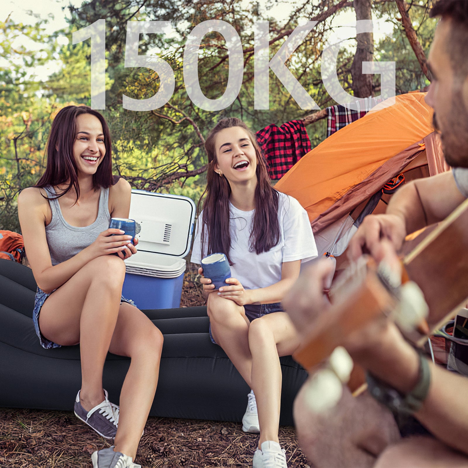 高品質ナイロン素材を使用し、ソファーとしての使い心地と耐用性を実現。使用時のサイズは、座るにも寝そべるにもしっかりとした厚みを感じられる高さ33~40㎝、長さはゆったりとした180㎝。150㎏の耐荷重で、2人で座ることも可能です。