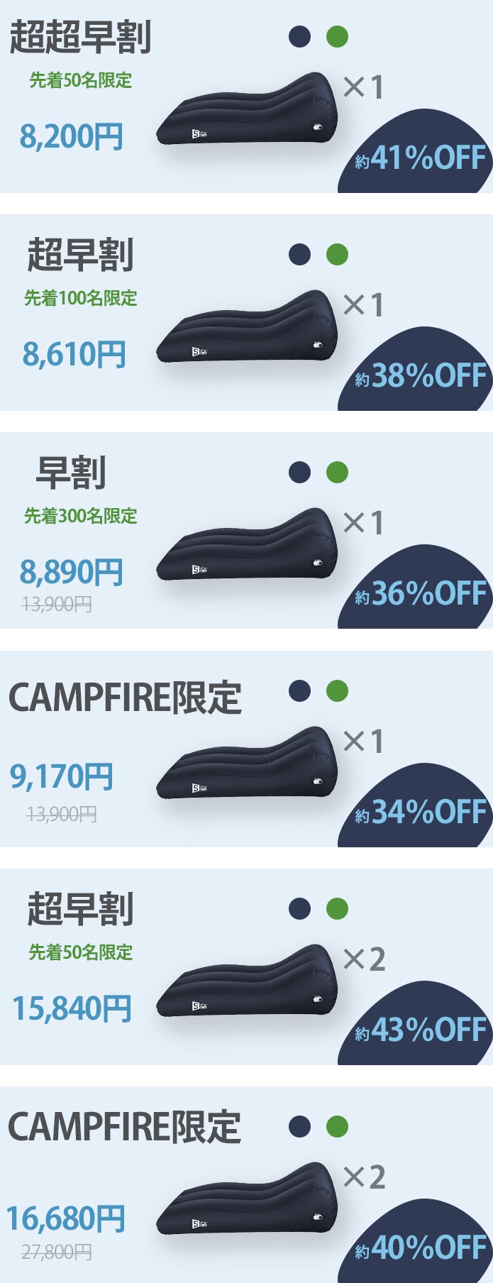 2022/05/03 14:27この度は、SFY電動エアソファーに対しご支援、ご関心をお寄せいただき誠にありがとうございます。3月23日にスタートした本プロジェクトですが、4月29日をもって終了となりました。最終的に23名様にご支援を頂くことができました。ご支援頂いた皆様、情報シェアにご協力を頂いた皆さまに、改めて深く御礼申し上げます!ありがとうございました!1日でも早く皆様のもとへ電動エアソファーSFY をお届けできるよう、スタッフ一同努めてまいりますので、今後ともどうぞよろしくお願いいたします。 もっと見る