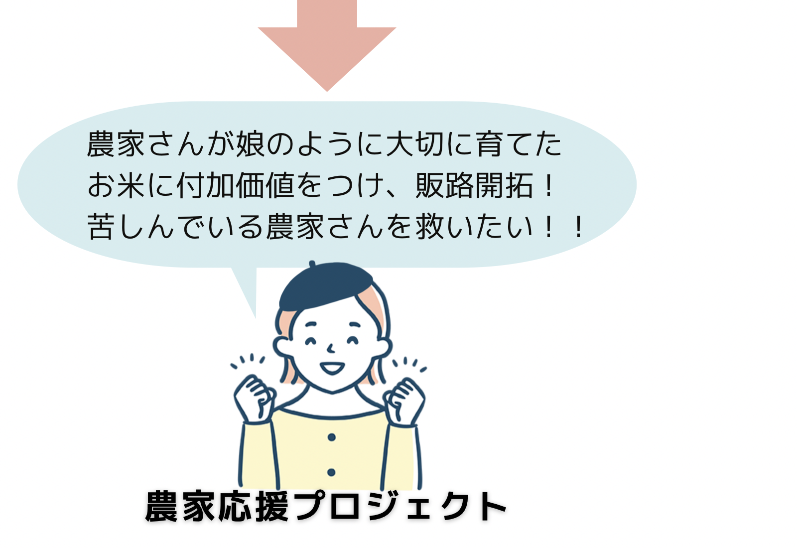 「大切な『娘』のように手塩にかけて育てたお米を、たくさん食べて、笑顔で元気になってほしい!」