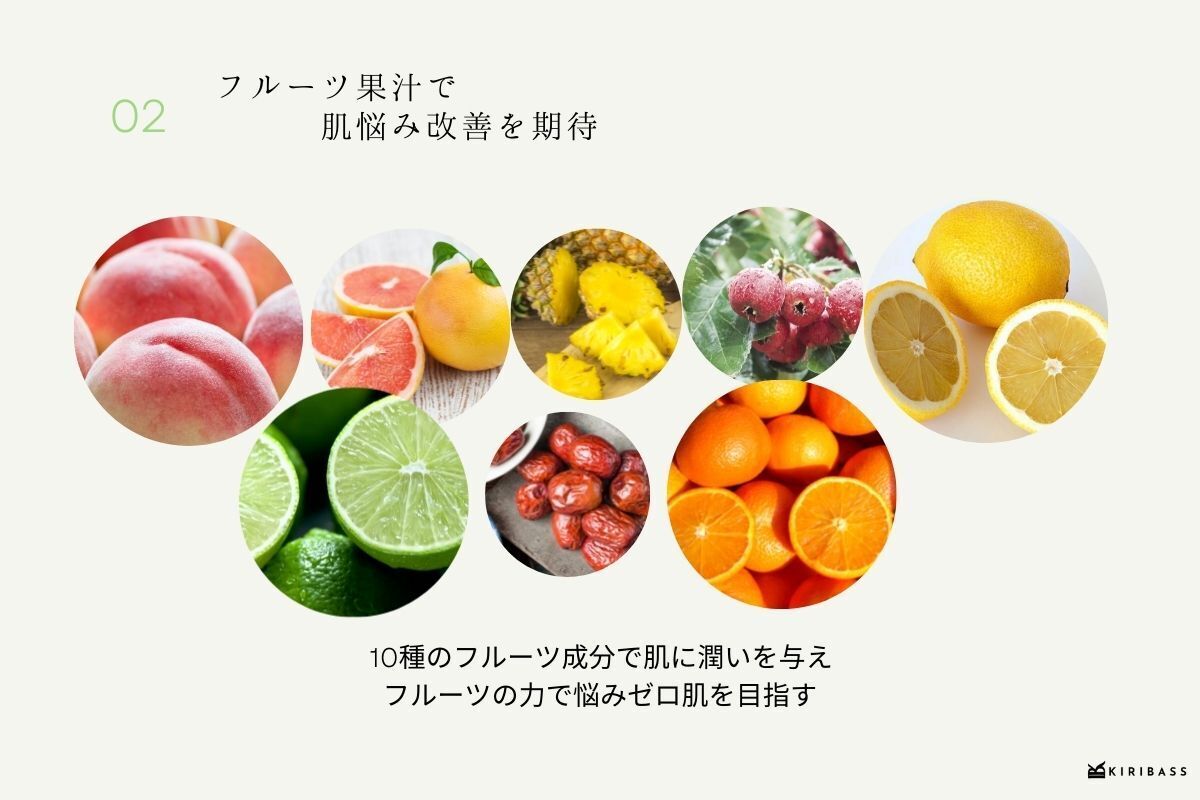 フルーツ成分のいいとこだけを配合しお肌に栄養を配達