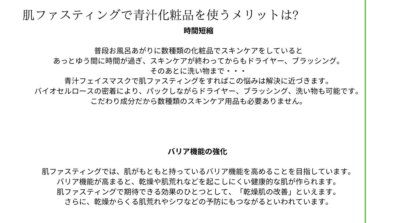 青汁×幹細胞×フルーツ×バイオセルロースで週1回徹底的にお肌をスペシャルケアする為に開発された