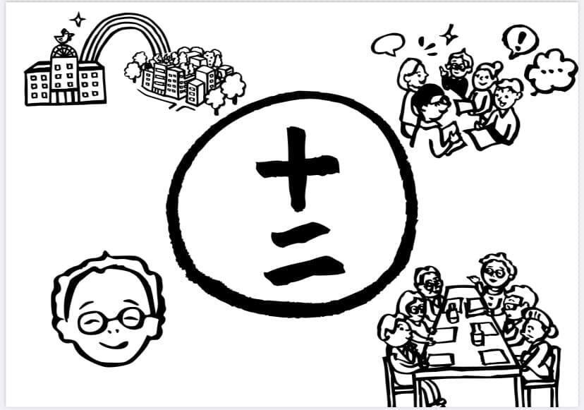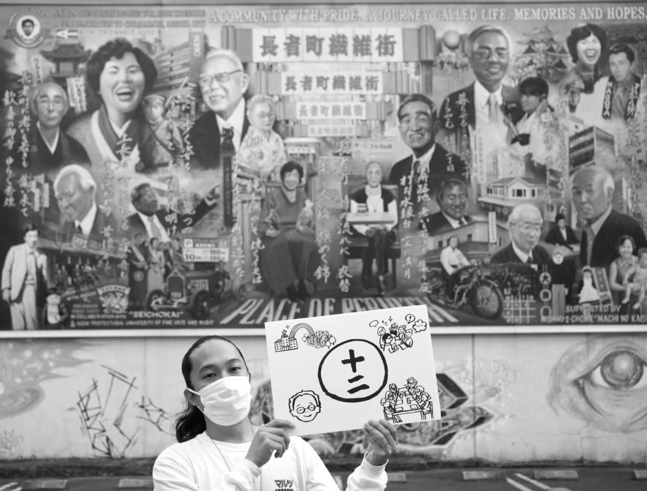 発端は、壁画に登場する人たちをはじめとするまちの人によるボトムアップでつくられた「錦二丁目まちづくり構想」(錦二丁目まちづくり構想)にあります。カウントダウンパネルには、この時の会合の様子・描いた夢、専門家として牽引した延藤安弘(故)先生の似顔絵を描きこみました。