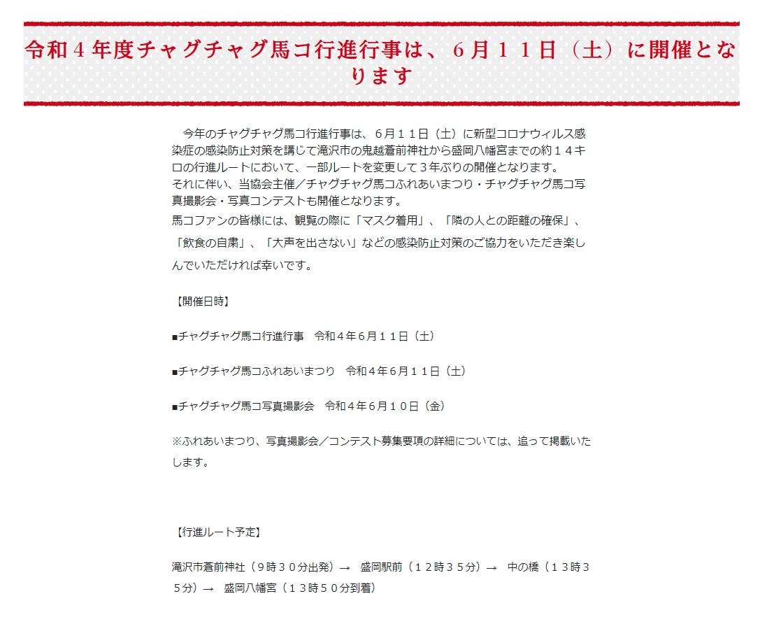 「令和4年度チャグチャグ馬コ行進行事は、6月11日(土)に開催となります」