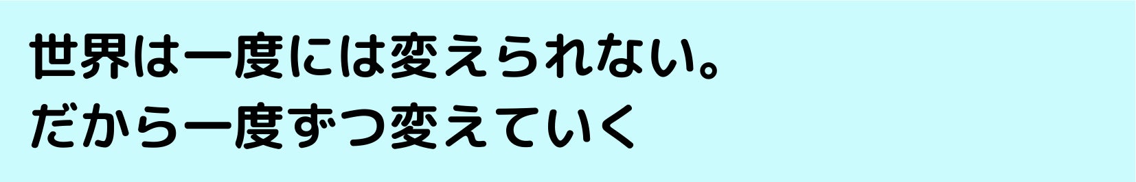 「世界は一度には変えられない。だから一度ずつ変えていく」この言葉は、ある本(*1)の中で出てきた言葉です。私はハッとしました。そうか、一度ずつでいいんだ。