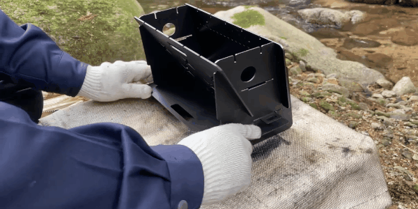 片方が二次燃焼構造の無骨な焚き火台