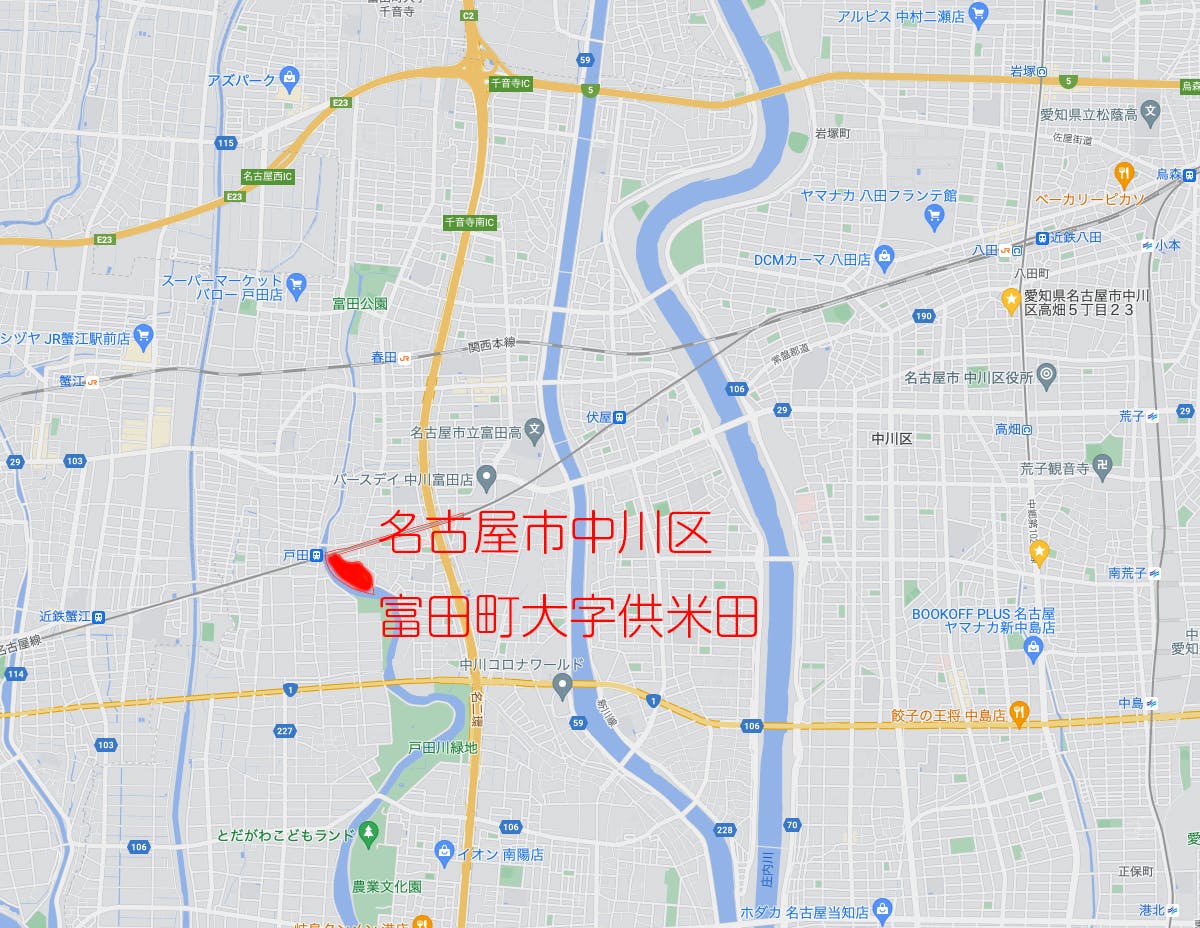 ◆名古屋市中川区富田町大字供米田の場所について