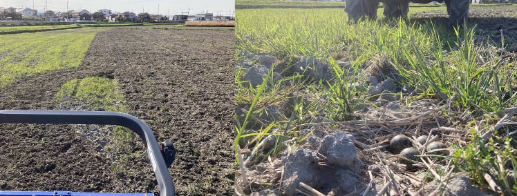 現在、供米田では「みんなで未来をつくろ米」プロジェクトの5月田植えに向けて、圃場を耕運しております。そんな中、田んぼの真ん中で「卵」を発見!!色や形でネットで調べるとケリという鳥の卵のようです。田植え前には巣立っていくと思いますが、4月のオリエンテーションでケリの子どもたちに会えるかもしれません。小さな命を大切にしていきたいと思いました。