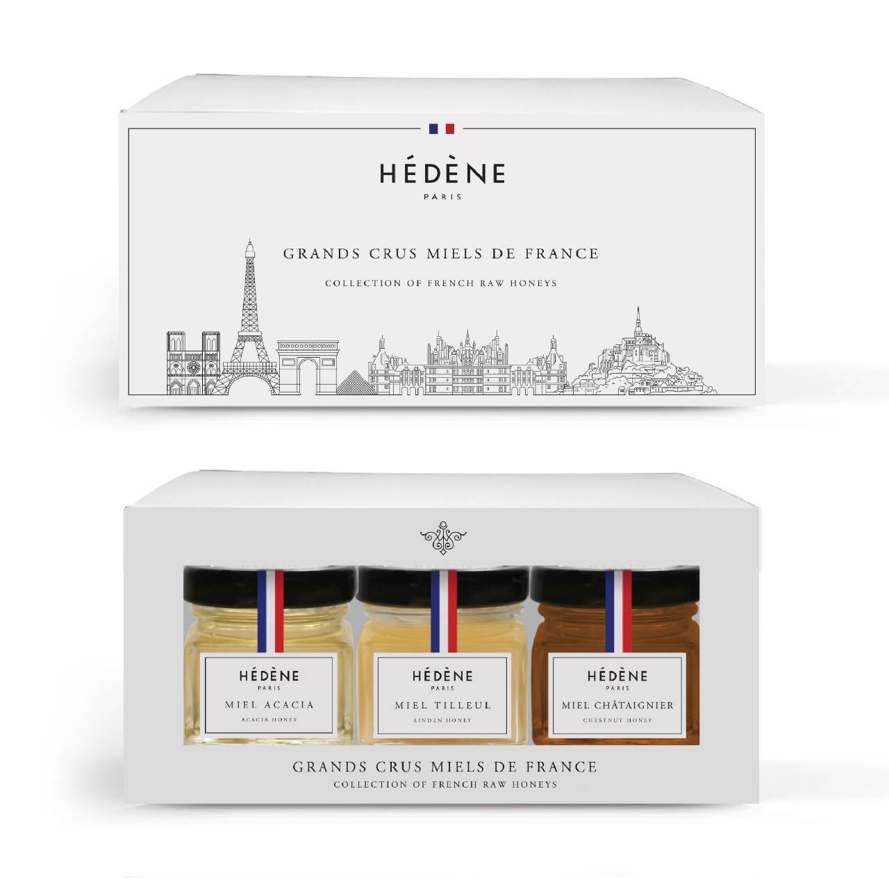 フランス産蜂蜜に特化した「Hedene(エデーヌ)」はパリの老舗デパート(ラ・グランドエピスリード・パリ、ギャラリーラファイエット、プランタン)、高級ホテル(フォーシーズンズ、ホテル・プラザ・アテネ)で取り扱いのある、貴重なフランス産の天然蜂蜜です。フランス各地域の野生の花から採れる巣花蜜で生産しています。巣花蜜 とは、1種類の花の蜜から採れる製法を指します。巣花蜜 は花の種類によって味や香りに特長が生まれます。