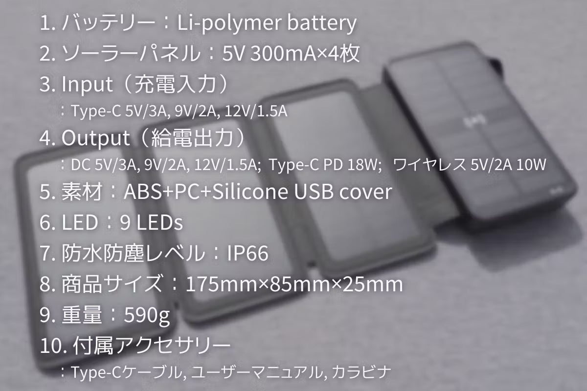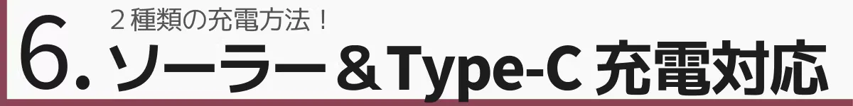 6. 充電方式「ソーラー」&「Type-C」