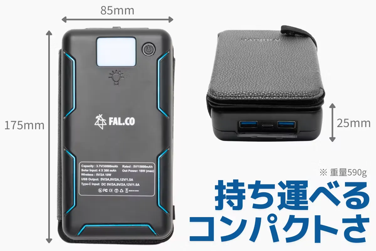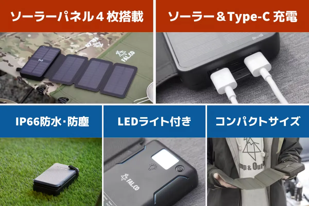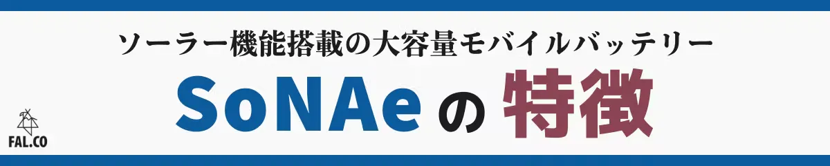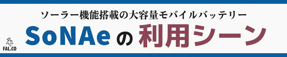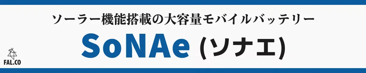新商品「 SoNAe 」は、アウトドアブランド FAL.CO(ファルコ) の手がけるソーラー機能を搭載した大容量モバイルバッテリーです。