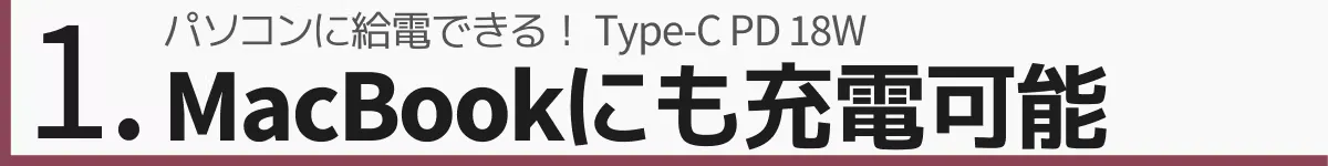 1. MacBookも充電可能!Type-C PD 18W出力