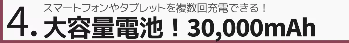 4. 大容量「30,000mAh」バッテリー