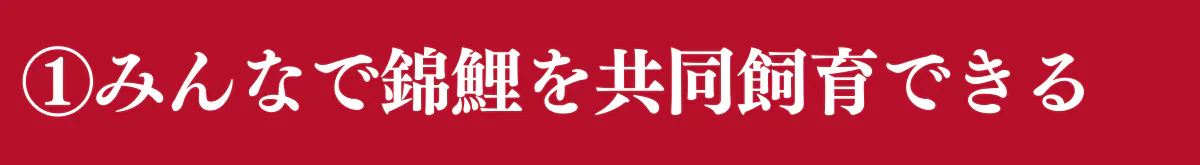 この地域で500年をかけて作り上げた、本当に綺麗な錦鯉の共同飼育オーナーになっていただけます!(普段のお世話はこちらでおこないます)錦鯉は1年で5〜10cm成長していくのですが、その成長の喜びをみなさんで共有していただくという試みです。購入した錦鯉はいつでも見ることが可能です。大きくなれば、どんなふうに次世代の錦鯉をオーダーメイドしていくのかも考えていくことができます!