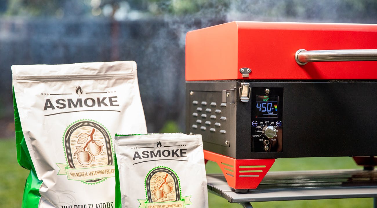 ASMOKEアップルウッドペレットグリルで、どこでも美味しいバーベキューが楽しめます。