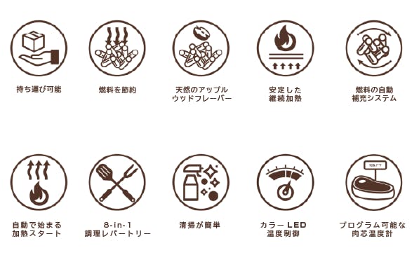 また、燃焼効率が良いことはペレットの使用量も抑え、灰の量も少量で済むため、グリルの後片付けも楽になります。