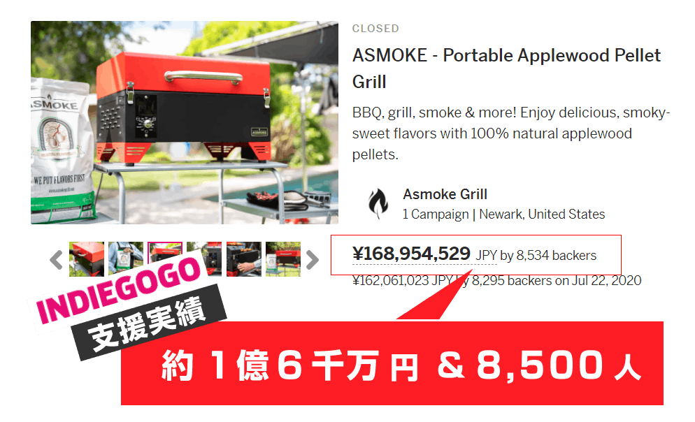 ASMOKE AS300はアメリカのクラウドファンディングサイトIndiegogoで開始5分でファンディング100%達成しました。総額約1億6千万円、8,534人から支援を集めた爆発的人気アイテムです。