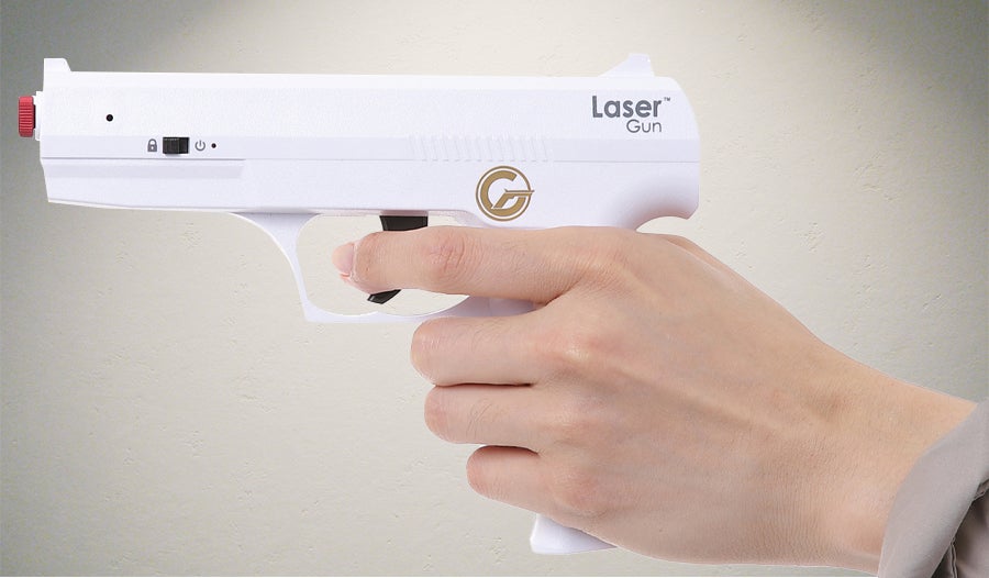 A:LaserGunに採用したのは、基準がクラス1に分類されたレーザー光です。トリガーを引くとPSCマーク制度検査に合格した赤色レーザーが瞬時に発射されます。