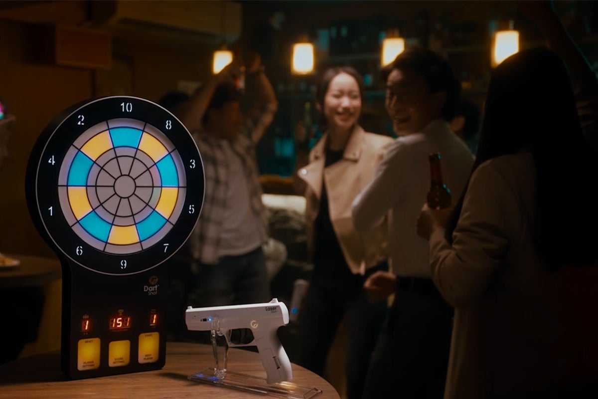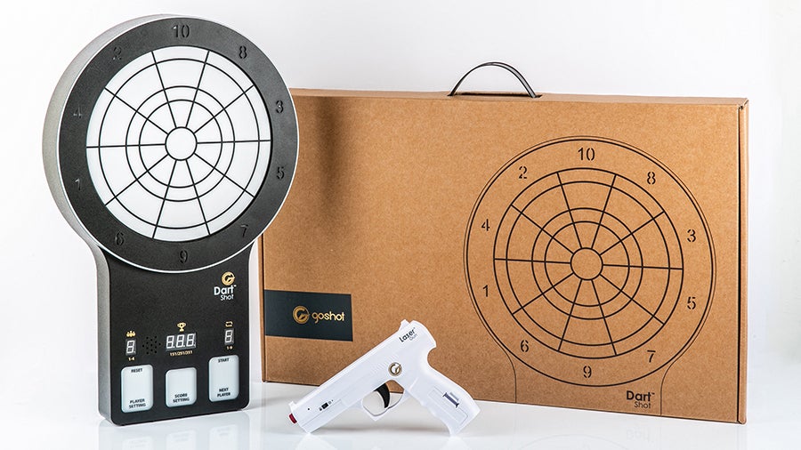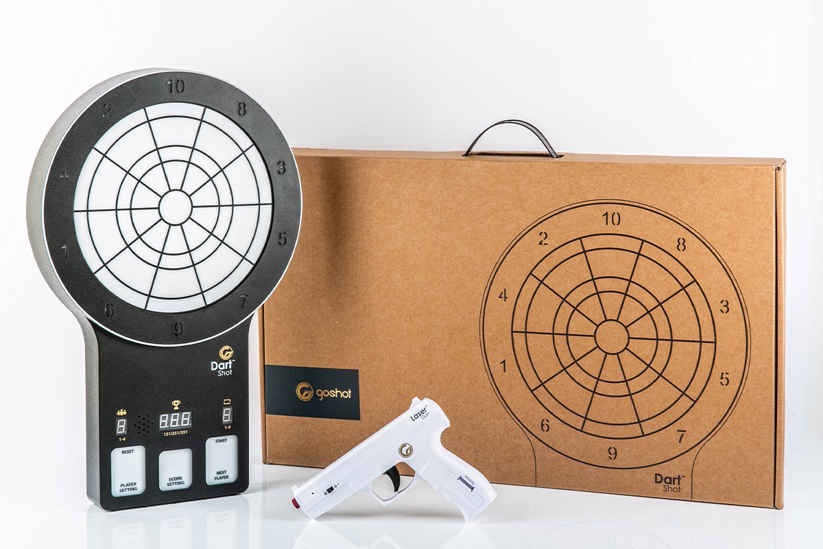 2021年、誰もが見たことない、レーザーガン、電子受光器、ダーツボードをセットにした、GoShotというブランドが生まれました。