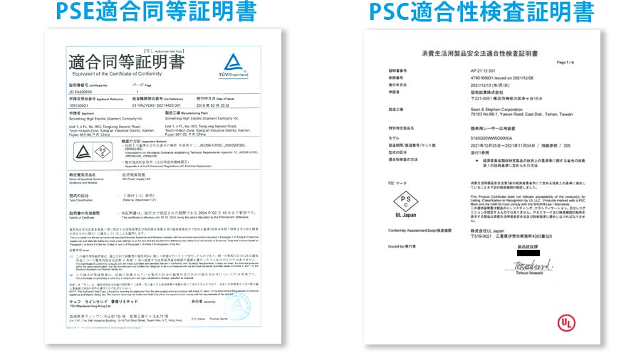 PSE適合同等証明書