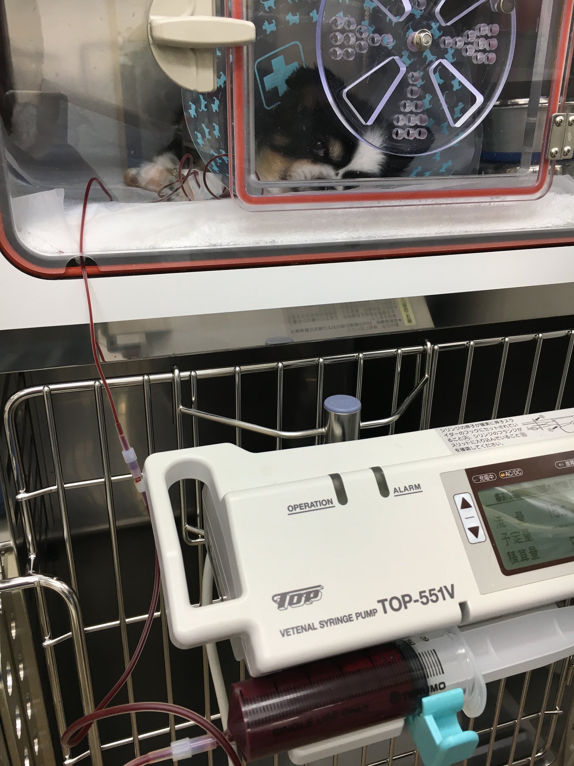 ICUにて輸血中のワンちゃん