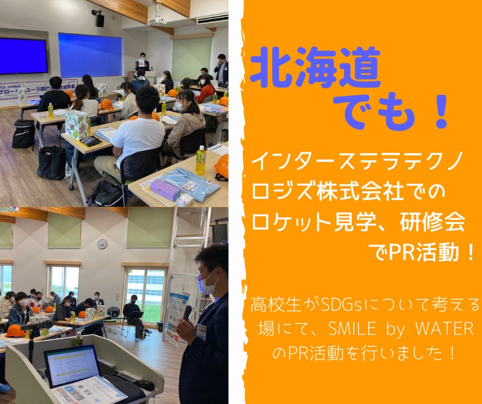 その中で、SDGsの取組の1つである『SMILE by WATER』についても、次代を担う高校生へ向け取組の説明を行いました。
