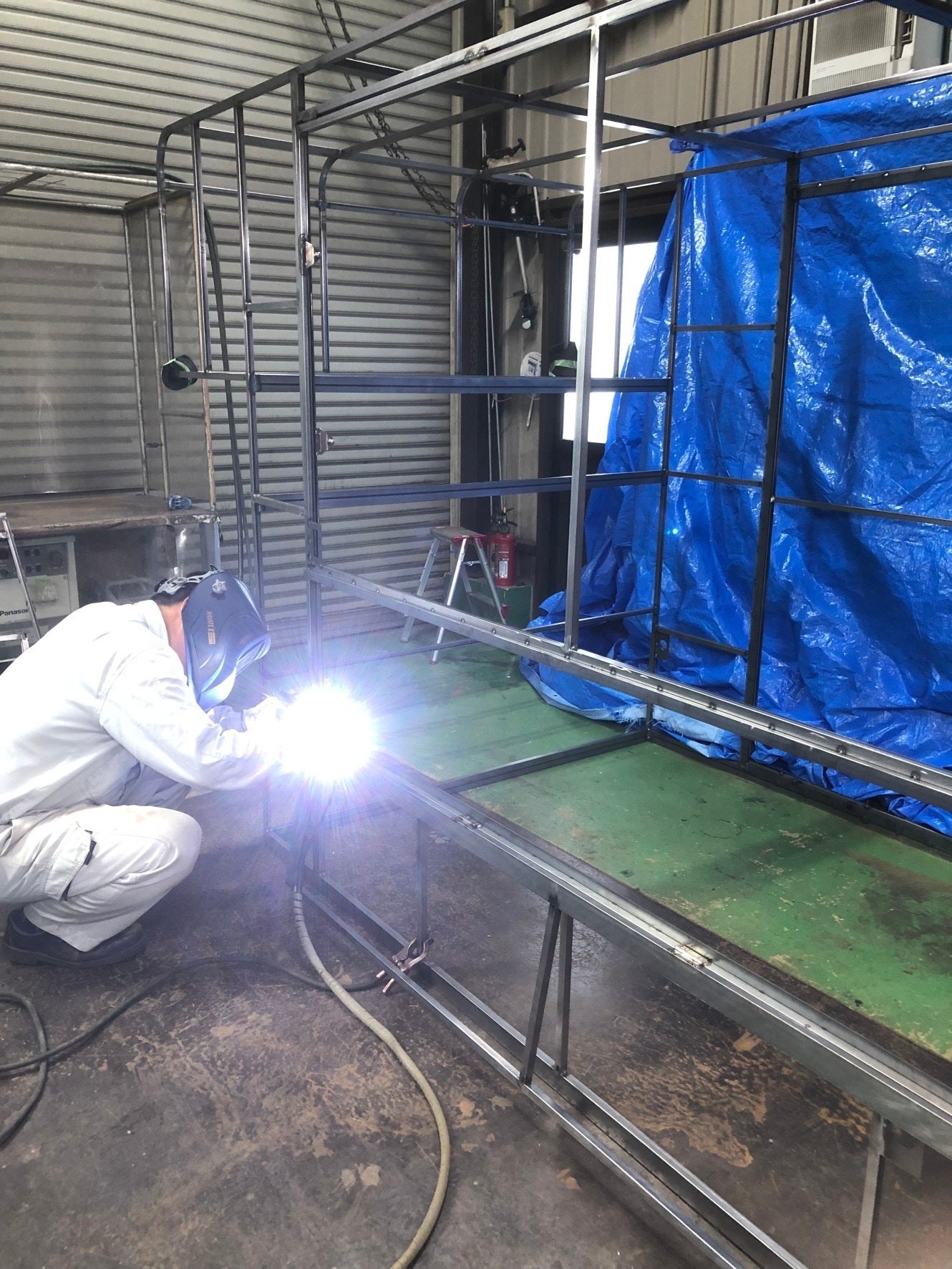 そこで考えたのが、軽トラックに自身のキャリアで培った溶接技術を生かしたフルパネル型のコンテナを架装すること。