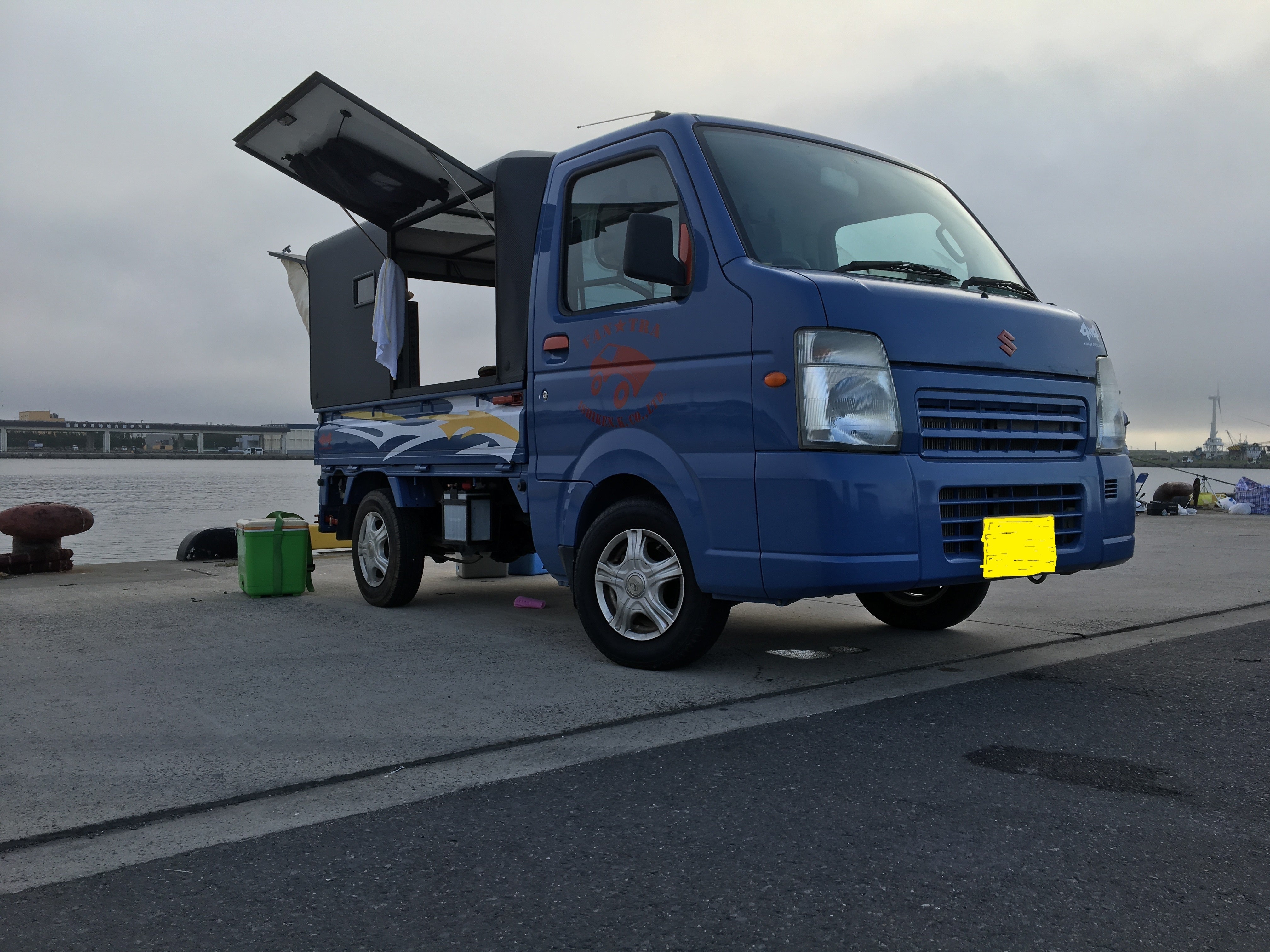 軽トラックをもっと格好よく!をコンセプトに試作したコンテナになります。三面窓ありの幌をご用意しております。幌は内側からも締めれるようになっておりますので、テント代わりとすることも可能です。