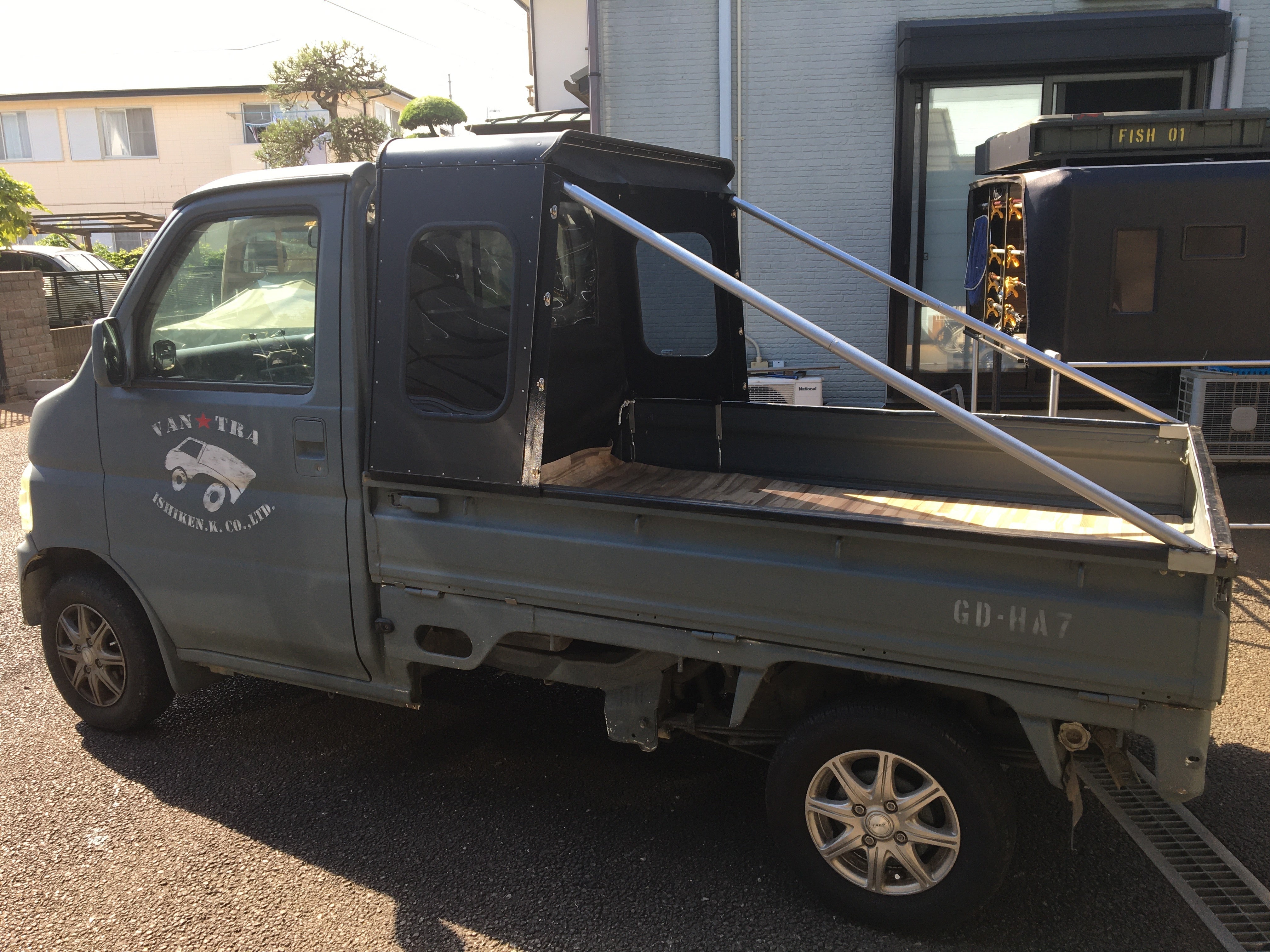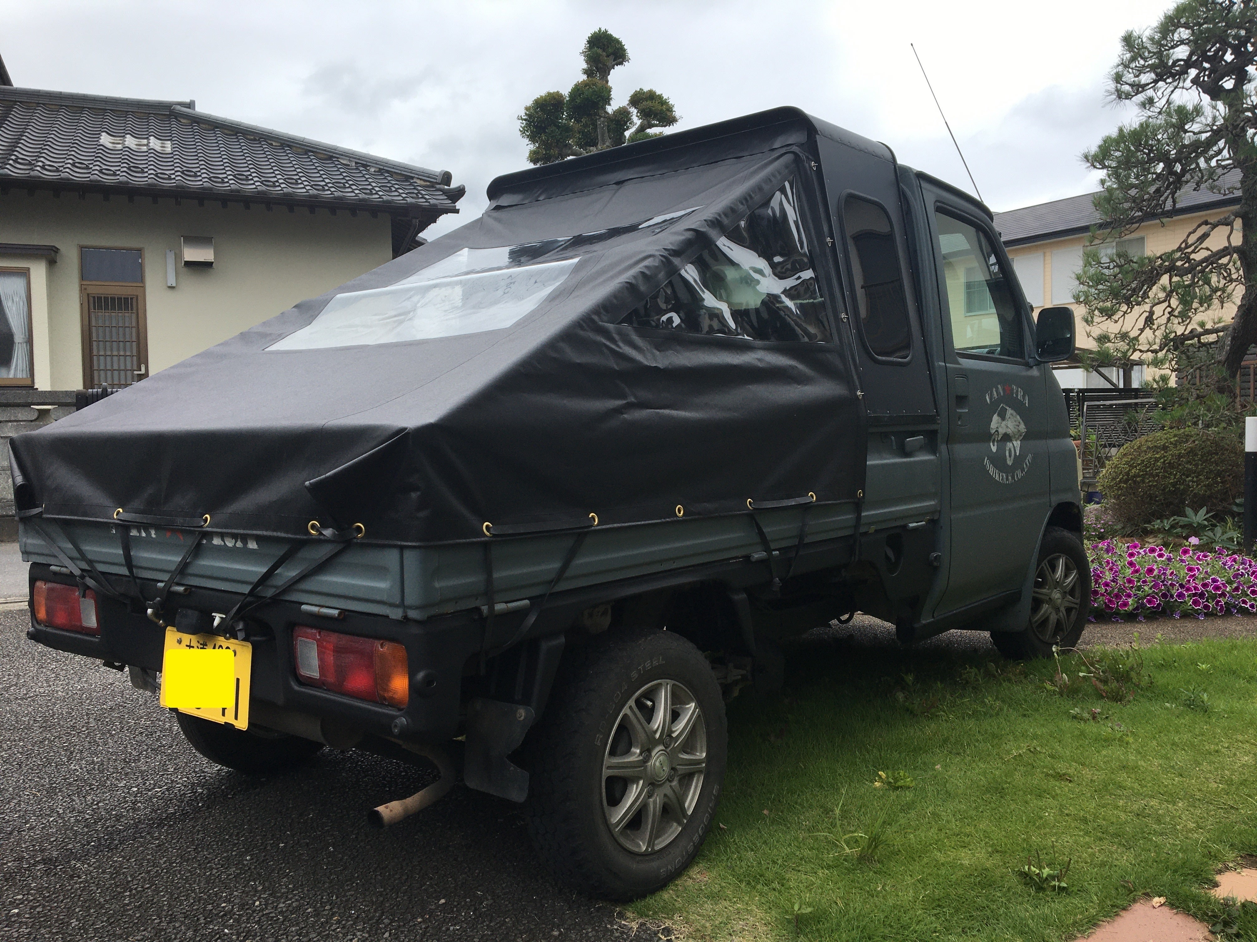 軽トラックをもっと格好よく!をコンセプトに試作したコンテナになります。三面窓ありの幌をご用意しております。幌は内側からも締めれるようになっておりますので、テント代わりとすることも可能です。