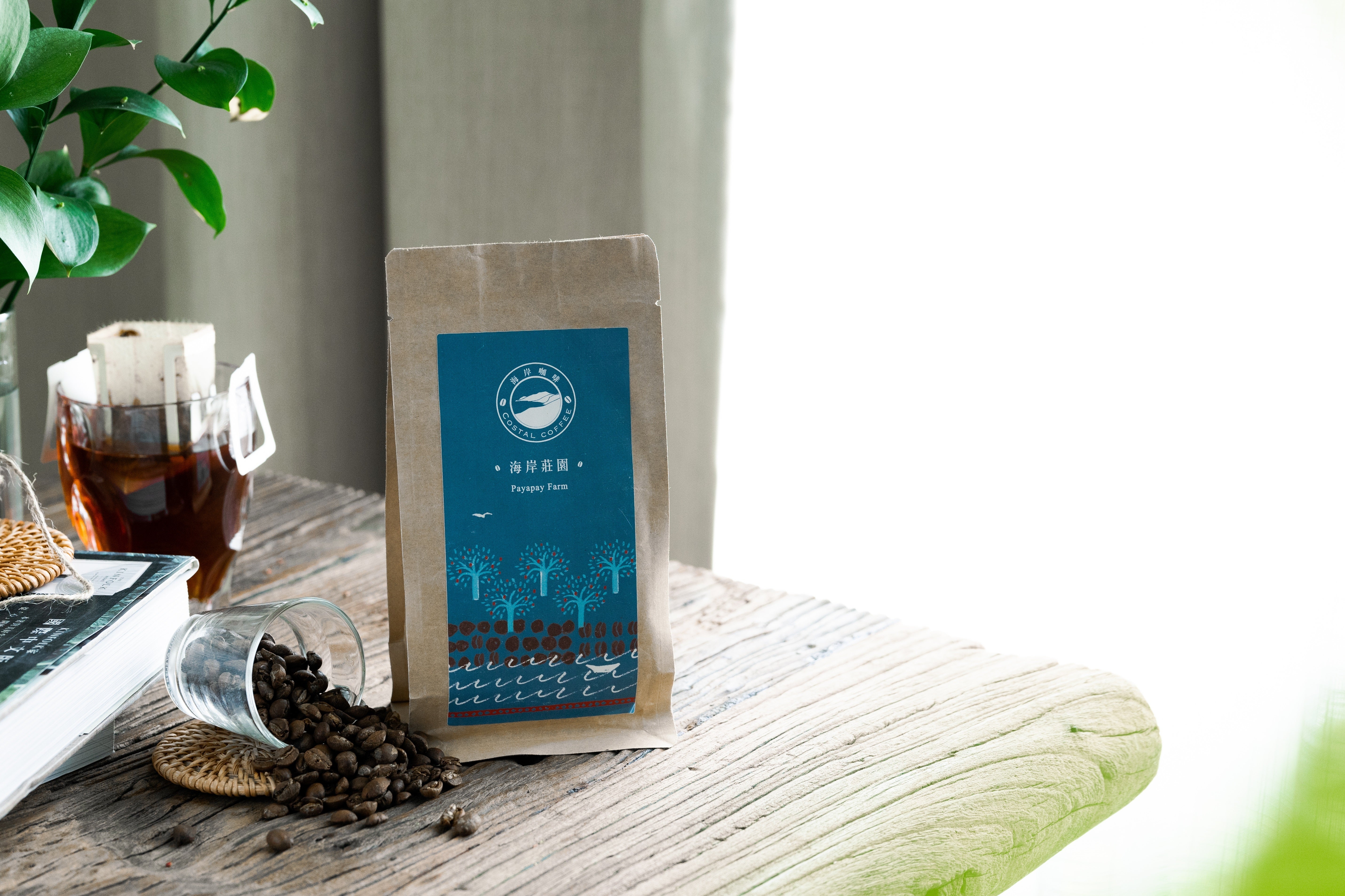『海岸珈琲』最大の特徴はその育った環境に有ると言われてます。山々に守られ、太平洋の優しい海風を受けながら育った豆は、酸味は少なく芳醇でフルーティーな味わいです。おいしい烏龍茶を飲んだ後に、中国語の ”回甘 ( ほのかな甘みが口に広がる感じ)” という感覚が有るのですが、台湾の土地で育った『海岸珈琲』はどこか烏龍茶と似ていて、飲み終えて暫くした後にこの感じ が残ります。そしてもう一度飲みたいと思ってしまう、そんな「魅惑の珈琲」なのです。是非日本の皆様と『海岸珈琲』を飲む楽しみを共感できたら嬉しいです。