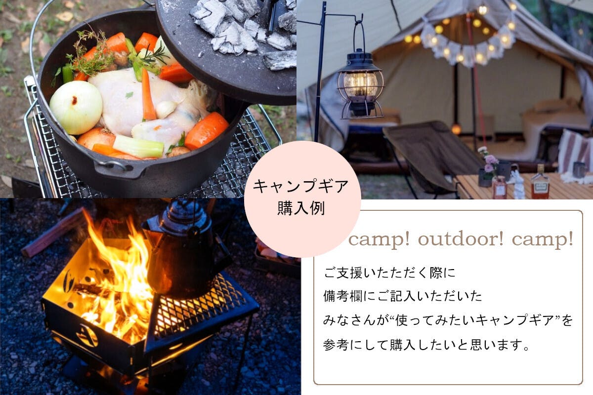 ★ご支援をいただく際、備考欄に“使ってみたいキャンプギア”をご記入ください。