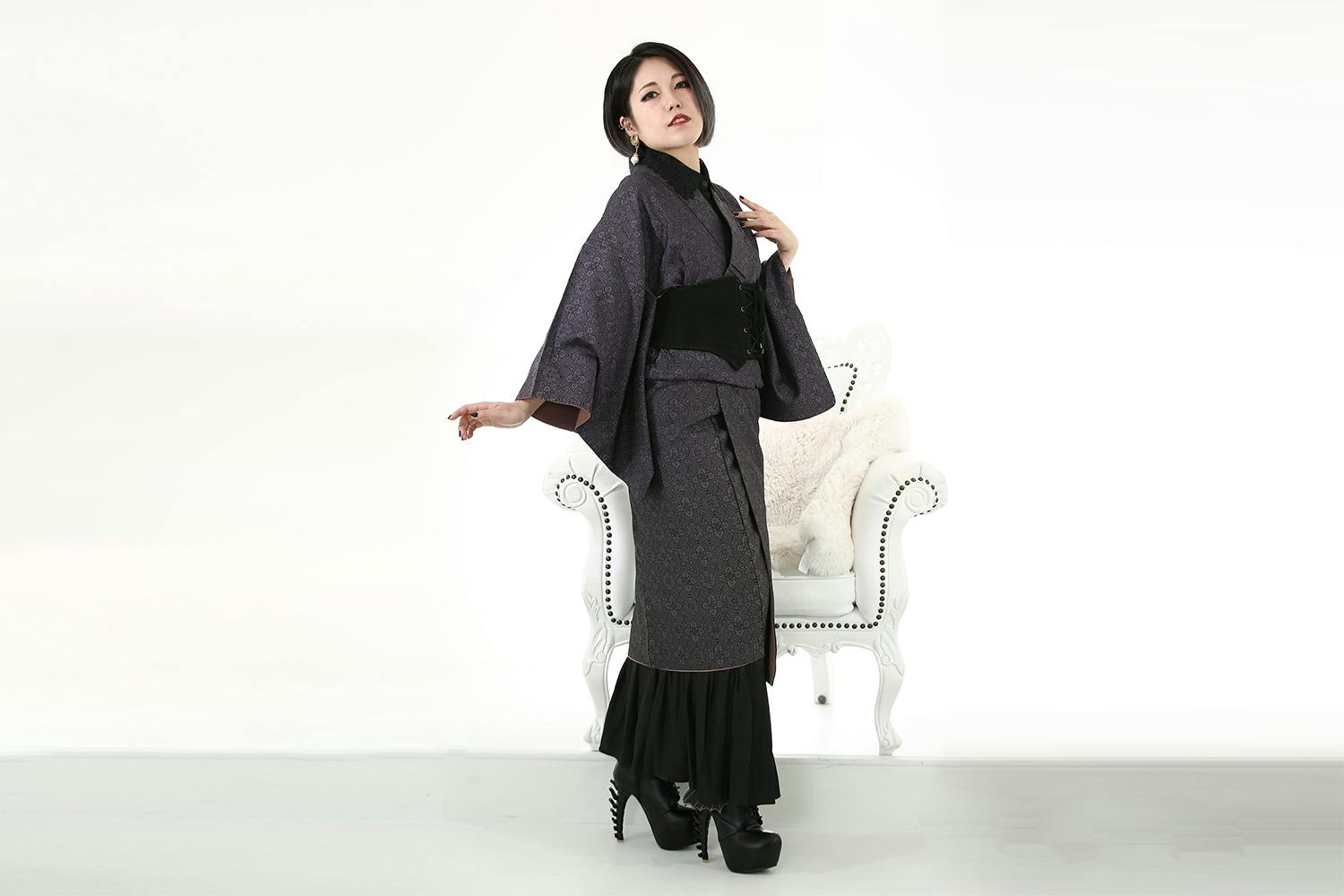 着物を切らず、着方でモダン和装を楽しめる工夫をしています。