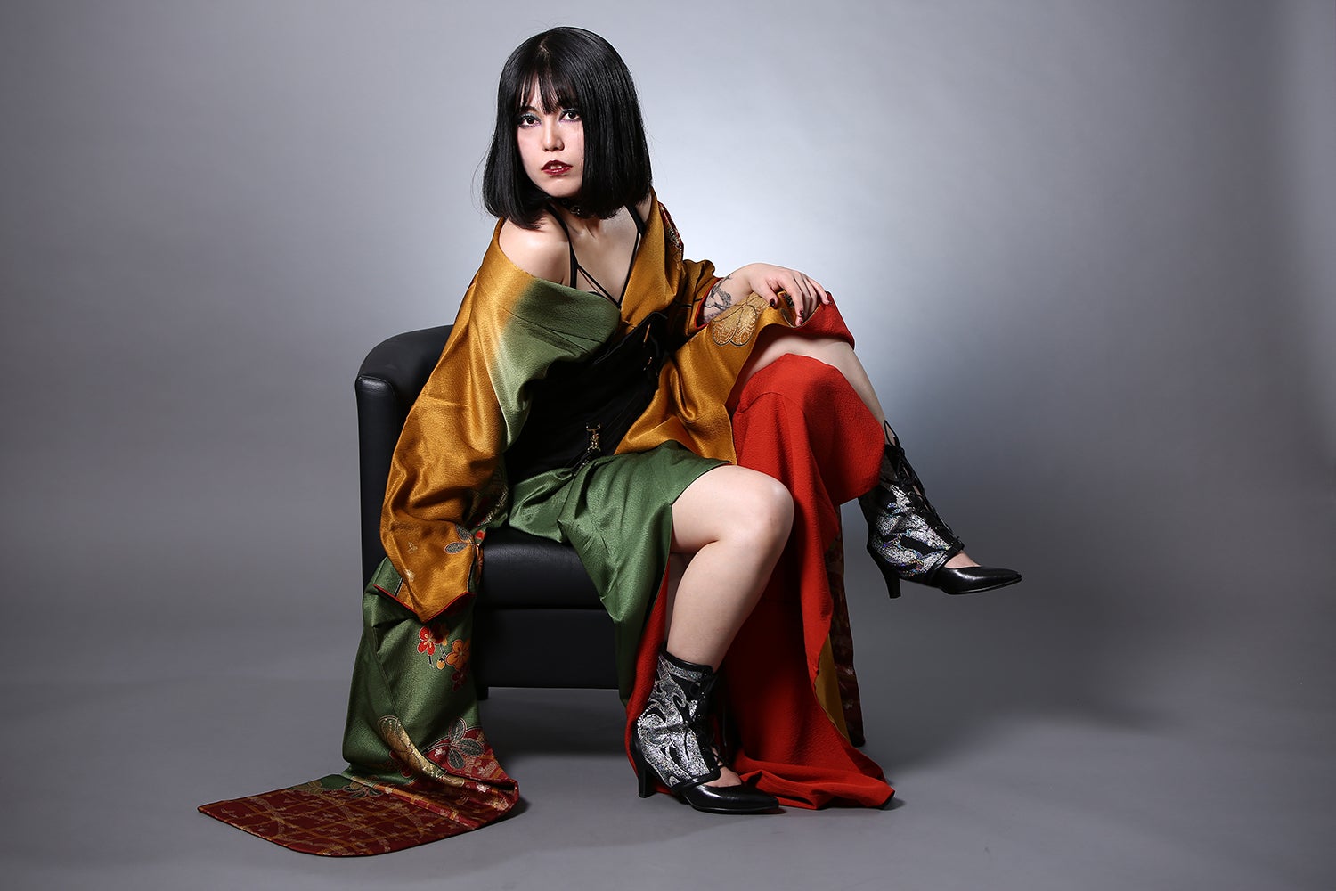 普通の着物を着付けで改革。京都でモダン着付けのコーディネート撮影をしませんか。