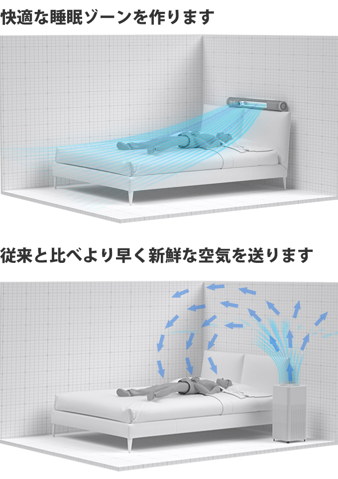 スリープモードが作動しているときは、ファンの速度が大幅に低下し、快適な入眠をサポートするので、誰もが幸せで健康的な睡眠時間を過ごすことができます。良質な睡眠はかけがえのないものだと言うことを、私たちは誰よりも理解しています。