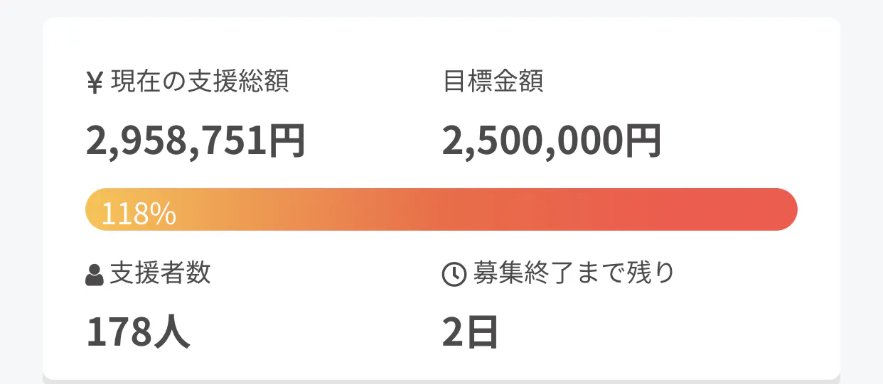 クラウドファンディング挑戦してから1カ月が経ち、支援者さまも170名様まで増え本当に嬉しい限りです。