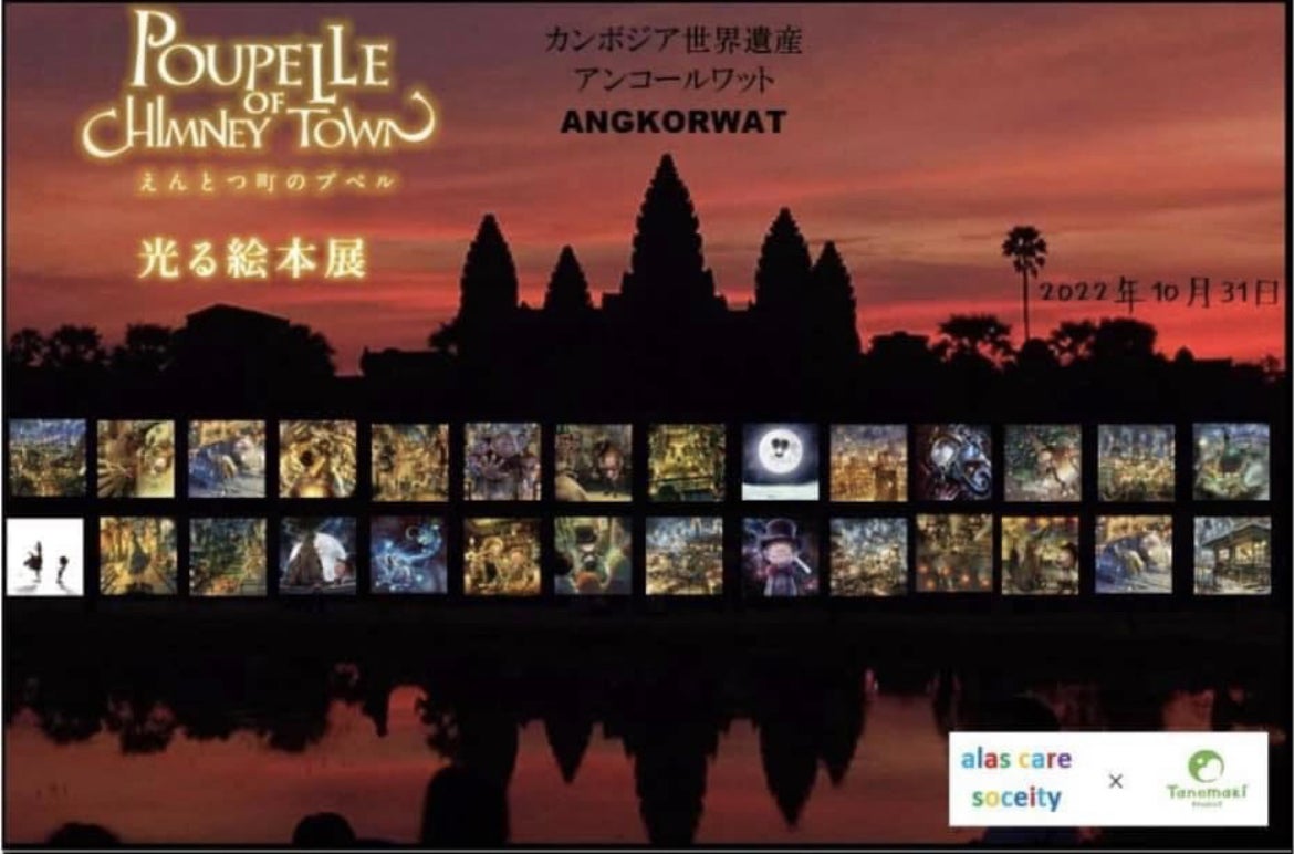 2022年10月カンボジアのアンコールワットを目指して「えんとつ町のプペル」光る絵本展を届けます。