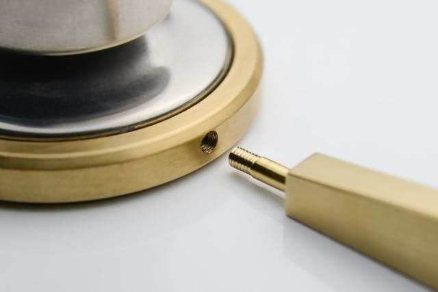 ハンドルや測温計の部分に使用されているステンレス金属「304ステンレス鋼」は、鉄にクロムを18%、ニッケルを8%添加したステンレス。