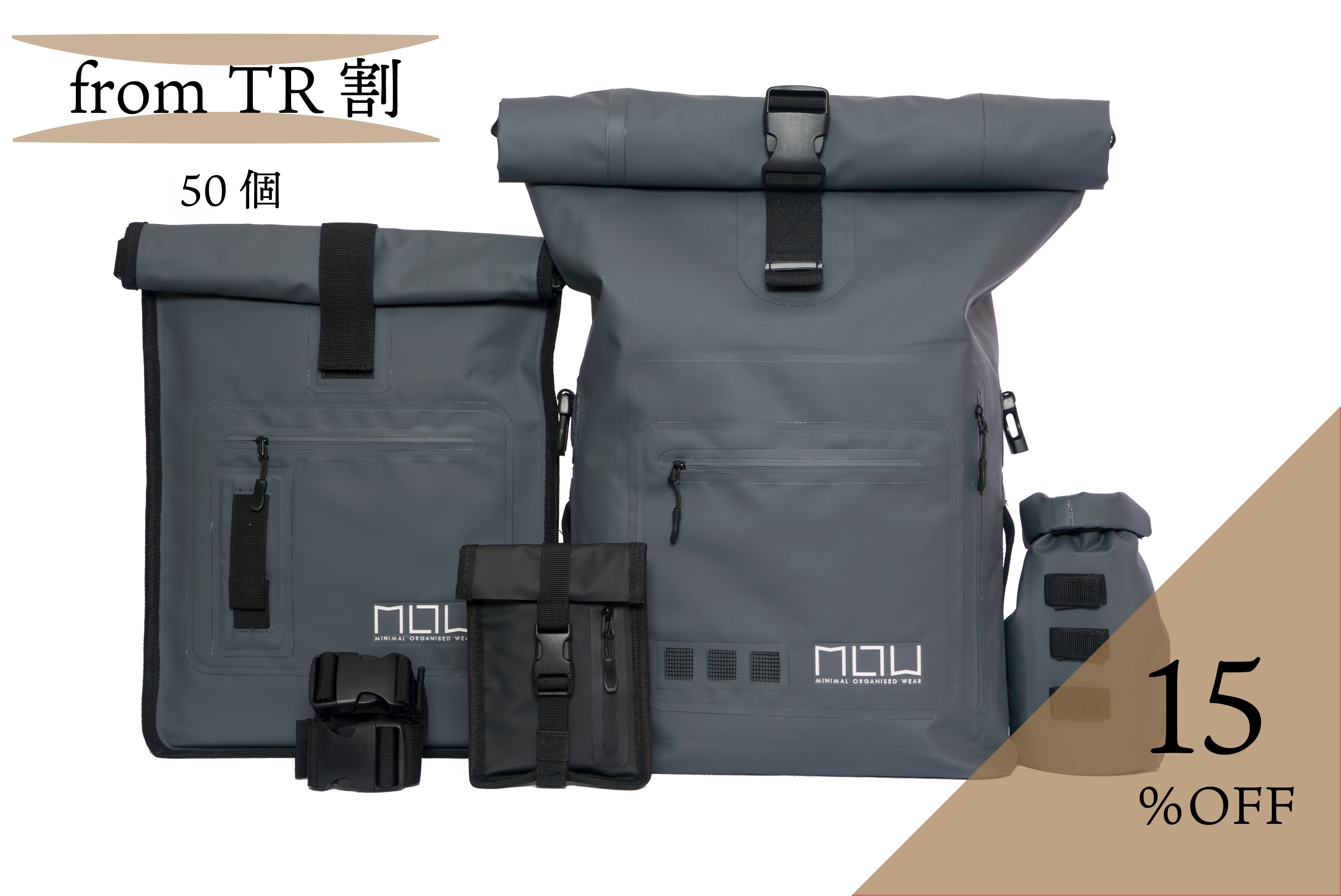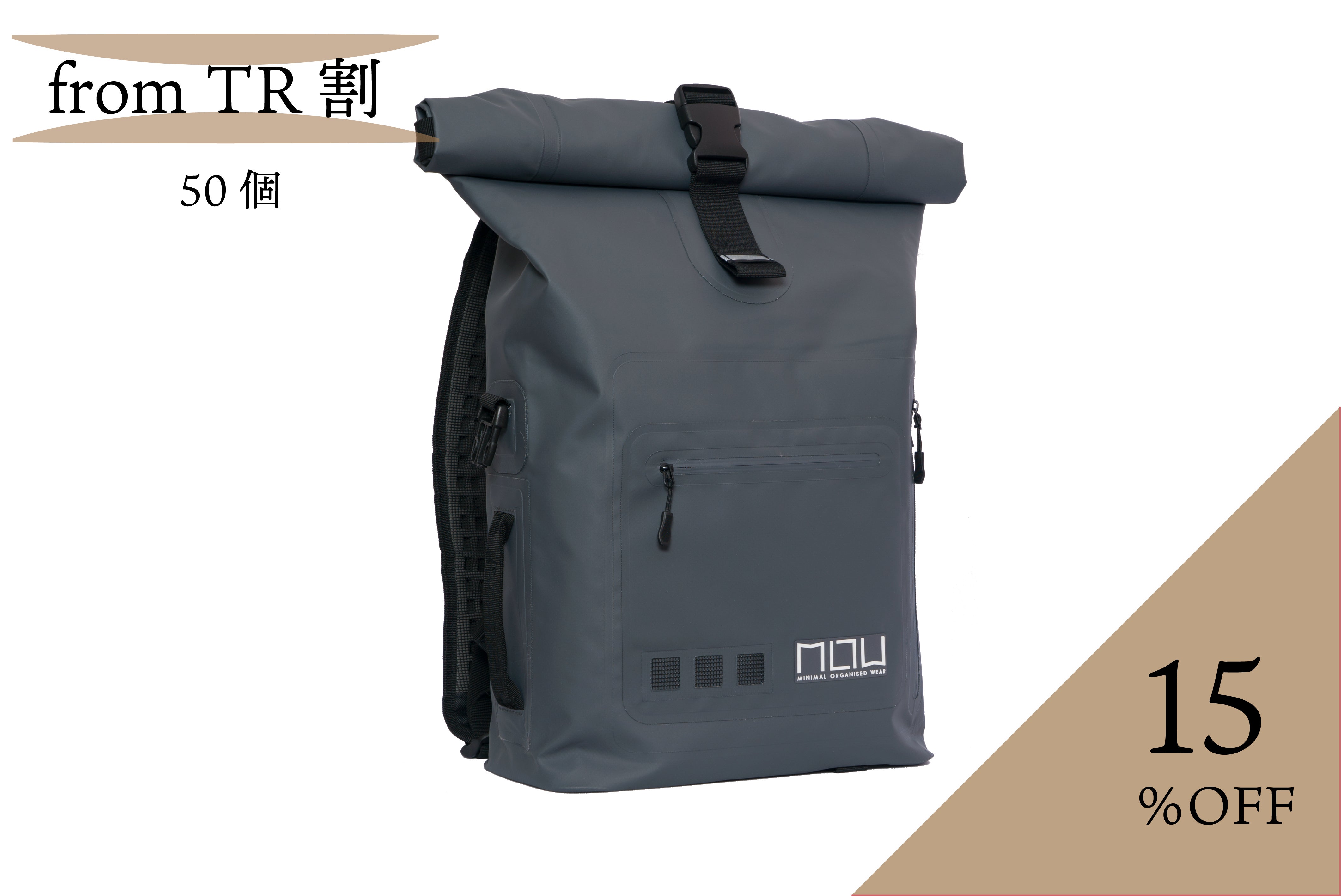 水に水没させても荒れ狂う滝に打たれても、内部へ一切の水の浸入を許さない防水機能をはじめ、23個もの機能を詰め込んだバックパック「MOW」。