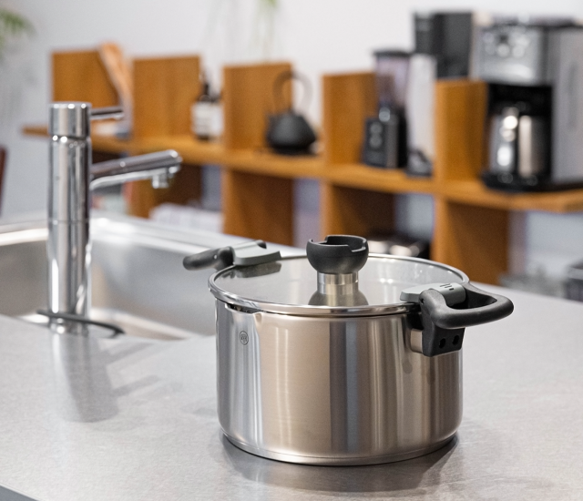 蓋を持って火傷の心配も無く、両手が空くのでお料理に集中できます。