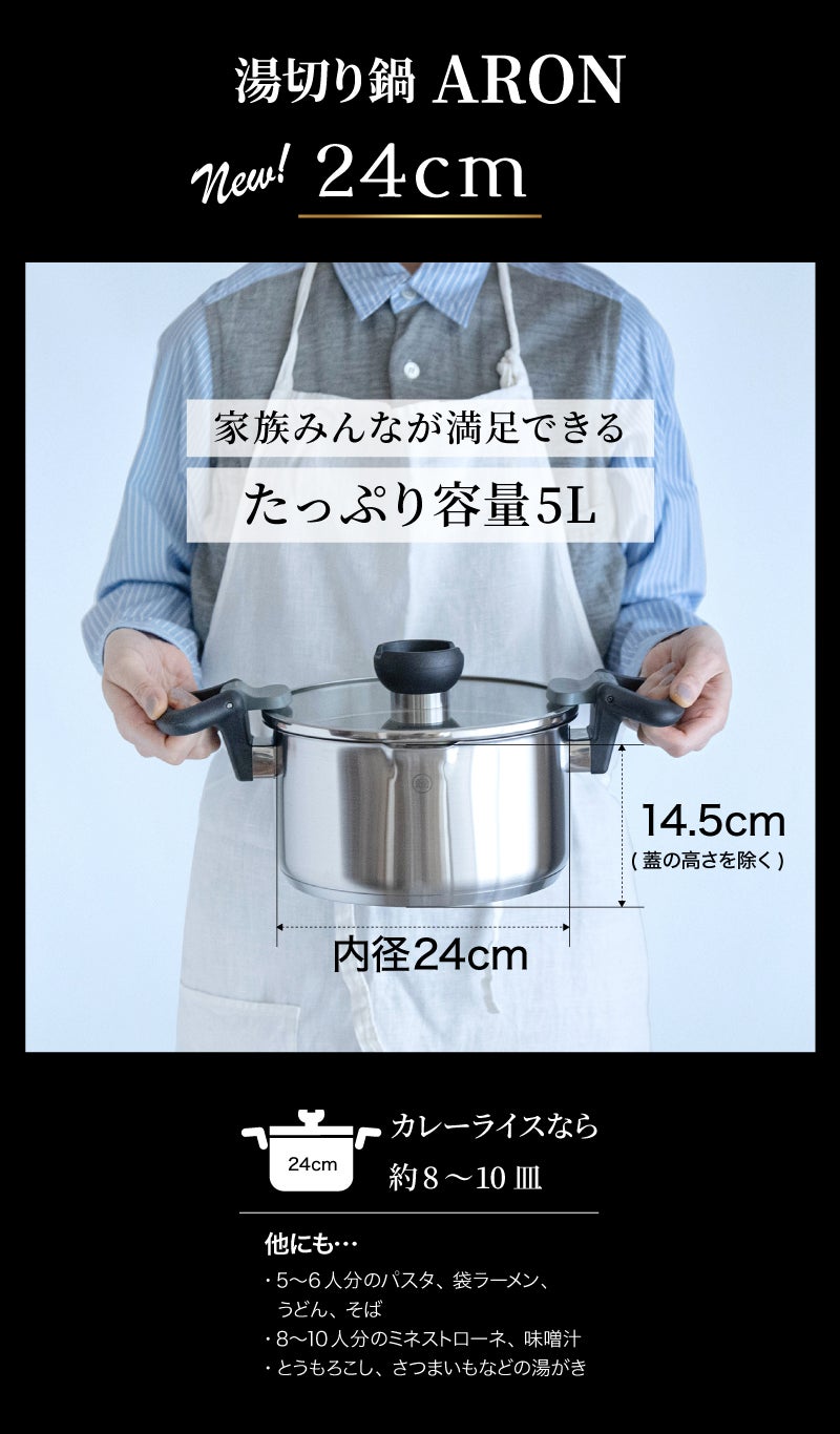「もうワンサイズ大きいお鍋が欲しい!」という皆さまの声にお応えして、24cmが登場しました!