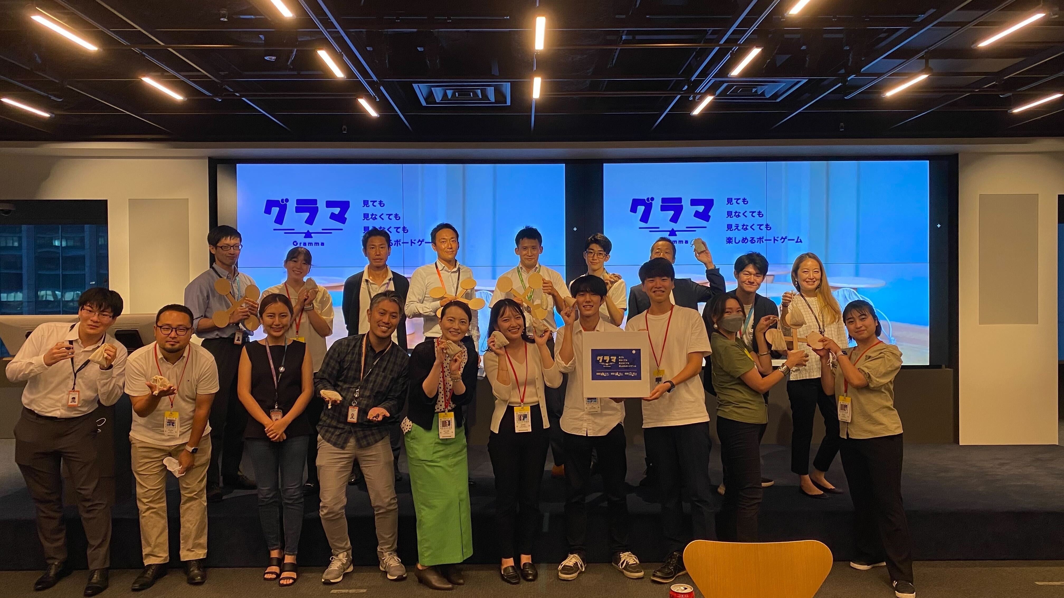 2022/10/10 14:48こんにちは、ビーラインドプロジェクトです!前回に引き続き、夏休み期間中に開催した体験会の開催報告です。9月2日に千代田区にあるブルームバーグ様の東京オフィスにて、ダイバーシティの促進に携わっていらっしゃる社員の皆さんと、ダイバーシティの研究をされている慶應義塾大学湘南藤沢キャンパス 塩田研究会の塩田准教授と学生の皆さんにグラマを体験していただきました!体験会の会場として使わせていただいたオフィスのお部屋は、ビルの20階ほどのところにあるガラス張りの空間で、初めての環境での体験会にメンバー一同とても緊張したスタートとなりましたが、回を重ねていく中でとても温かい雰囲気に会場が包まれていきました。今回の体験会で特に盛り上がったのが、「緊張感の度合い」で重さを揃えていた時のこと。とある方の「サブウェイで後ろに三人くらい並んでいるときに注文するときくらいの緊張感の度合いくらい」との重さの表現に、テーブル内で共感の渦が巻き起こりました。「電車の中で携帯の通知音が鳴ってしまったときの緊張感と程度は似ているか?」など具体的な質問を重ねていき、最終的に全員の重さが揃い、見事成功となりました!体験会後には、「深いコミュニケーションによって、普段話す社員同士でも知らなかった性格や生活を知れて楽しかった」「言葉で感情や感覚を伝え合う楽しさと難しさを感じることができた」「それぞれがもっている感覚の違いを知れて楽しかった」「はじめての人とも自然に自分の性格や価値観を話すことで打ち解けられた」など温かいコメントを多数いただきました!グラマは視覚に障害のない人同士でも、普段共有することのないような自分の性格や生活を互いに共有し、心の距離を近づけることのできるツールだと、改めて実感することができました。終了後には社員の皆様、塩田研究会の皆様ともたくさんお話しさせていただくこともでき、とても実りのある体験会となりました。お忙しい中ご参加くださった皆さんに深く感謝申し上げたいと思います。ありがとうございました!体験会の会場。高層階にあるオフィスの素敵なお部屋を使わせていただきました壇上でビーラインドプロジェクトについての紹介をする浅見体験会中の会場の様子。4チームに分かれて、それぞれ遊んでいます全チーム成功し大盛り上がりする会場 もっと見る