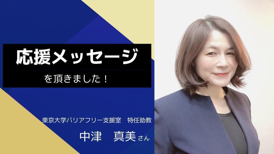 東京大学バリアフリー支援室特任助教の中津真美様より、応援メッセージをいただきました。