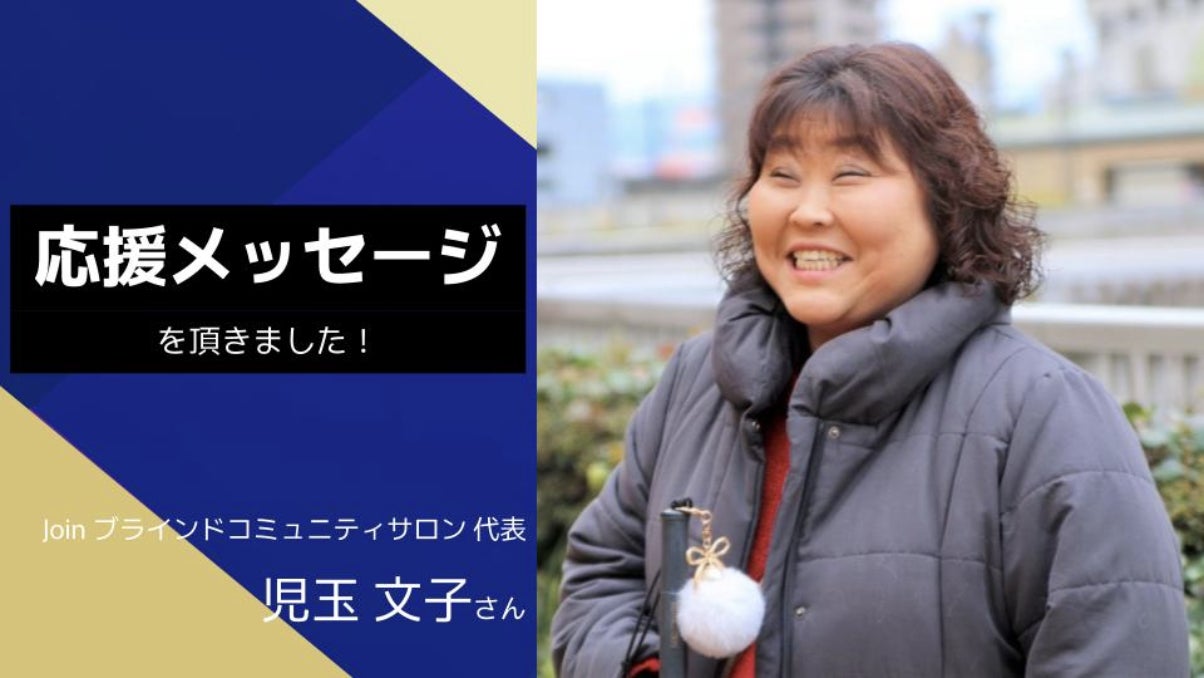 Join ブラインドコミュニティサロンの代表を務めていらっしゃる児玉文子さんより、私たちの活動への応援メッセージを頂きました。