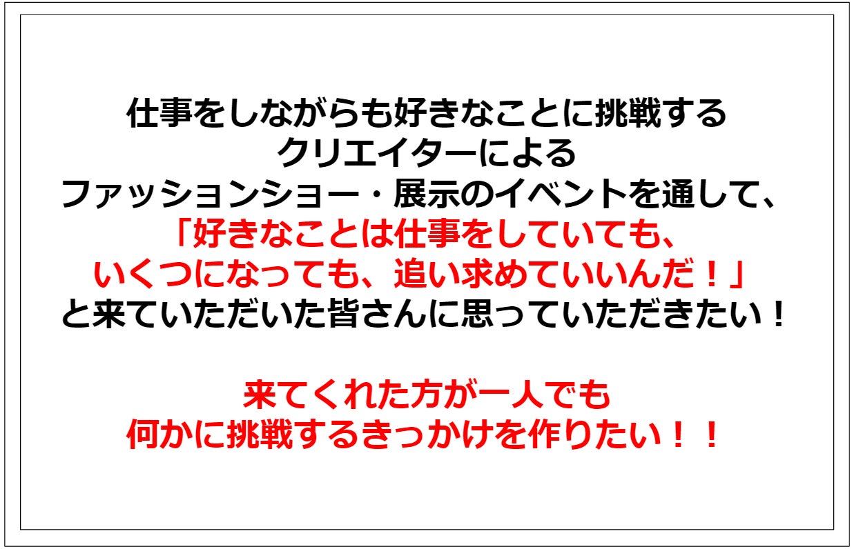 ファッションショーメインのイベントを参加費無料でたくさんの方に届けたい!!