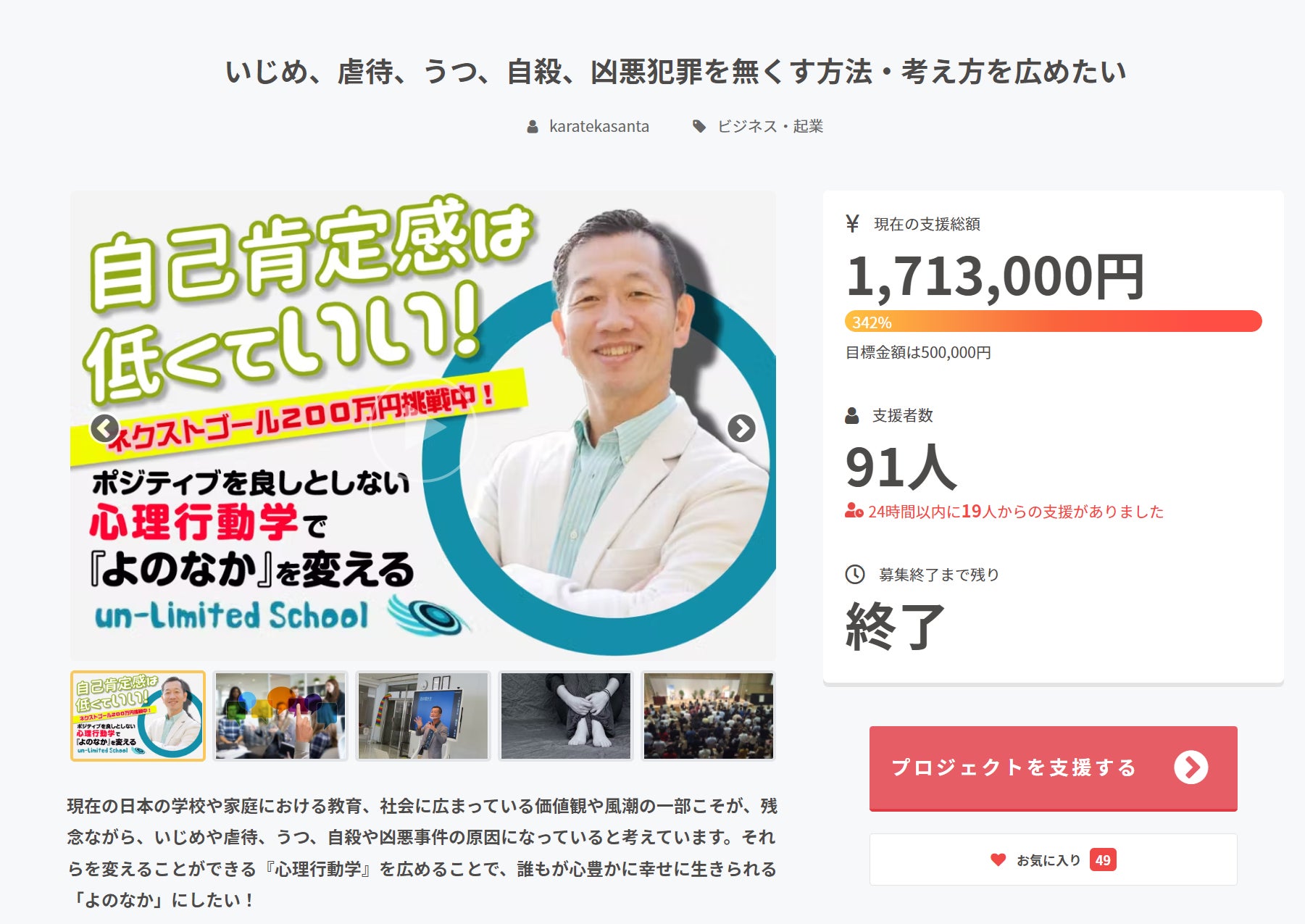 支援者数 91人!