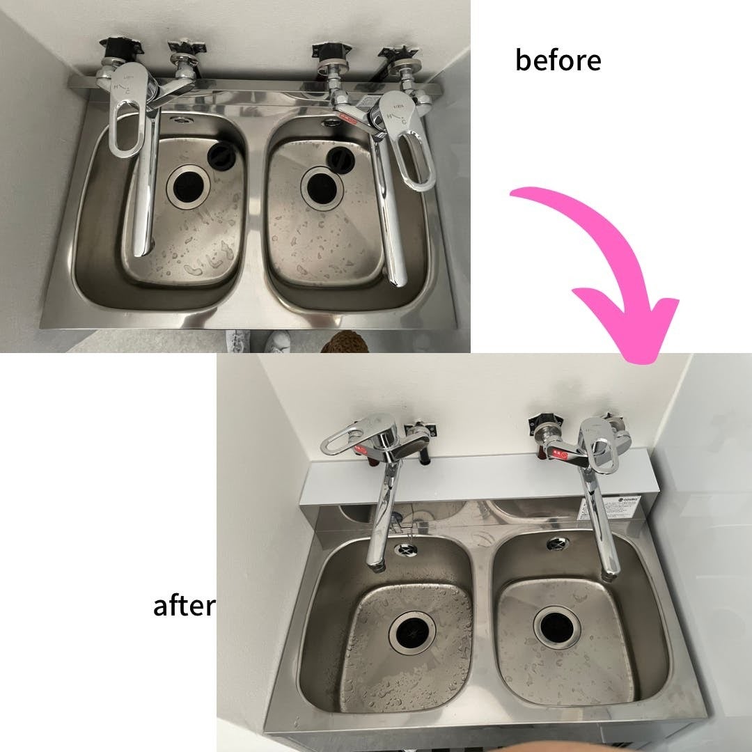 ・シンクが小さすぎ、水道がギリギリにあるため床が濡れてしまう。