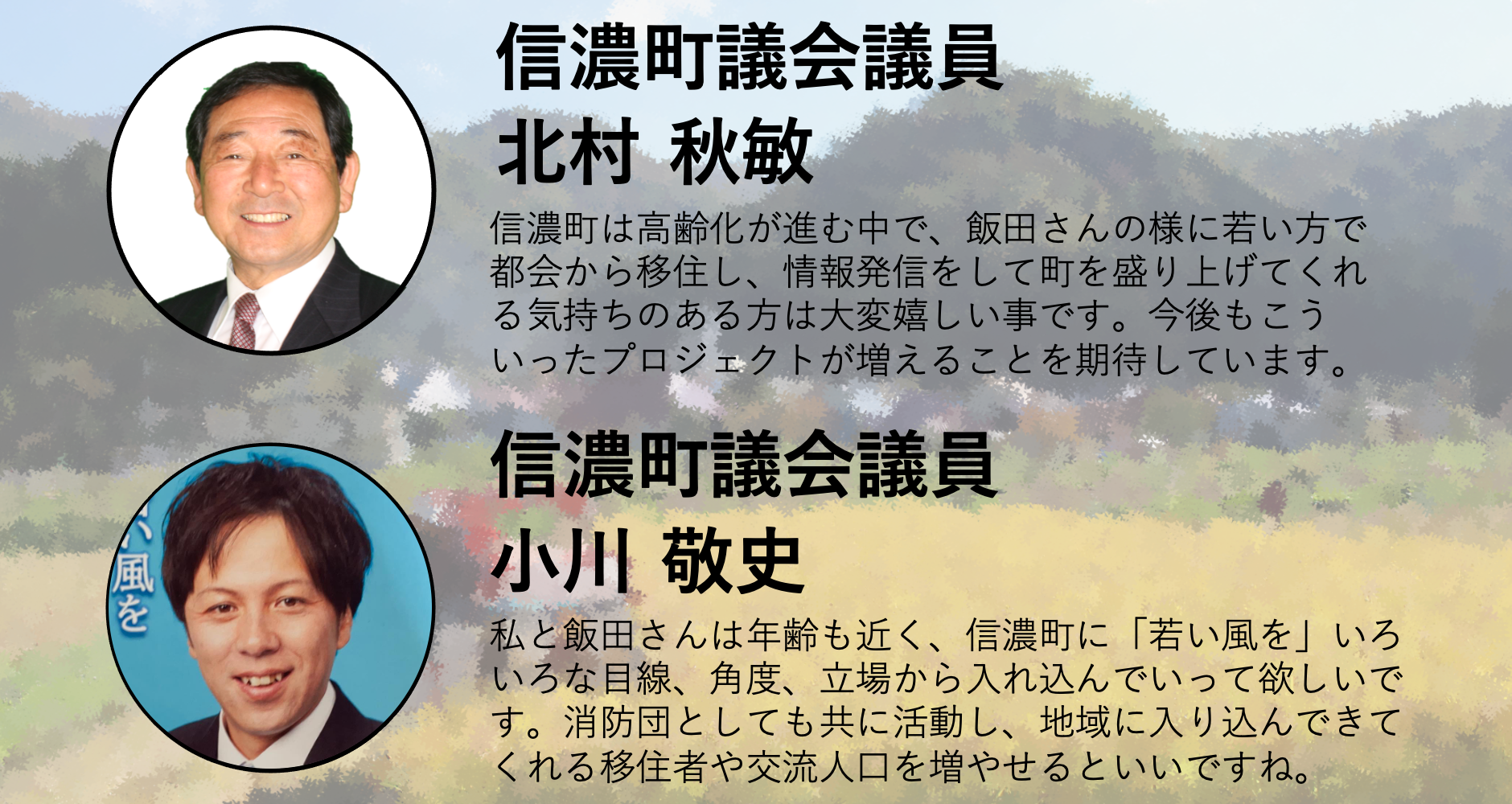 信濃町議会銀 北村秋敏氏、同 小川敬史氏より