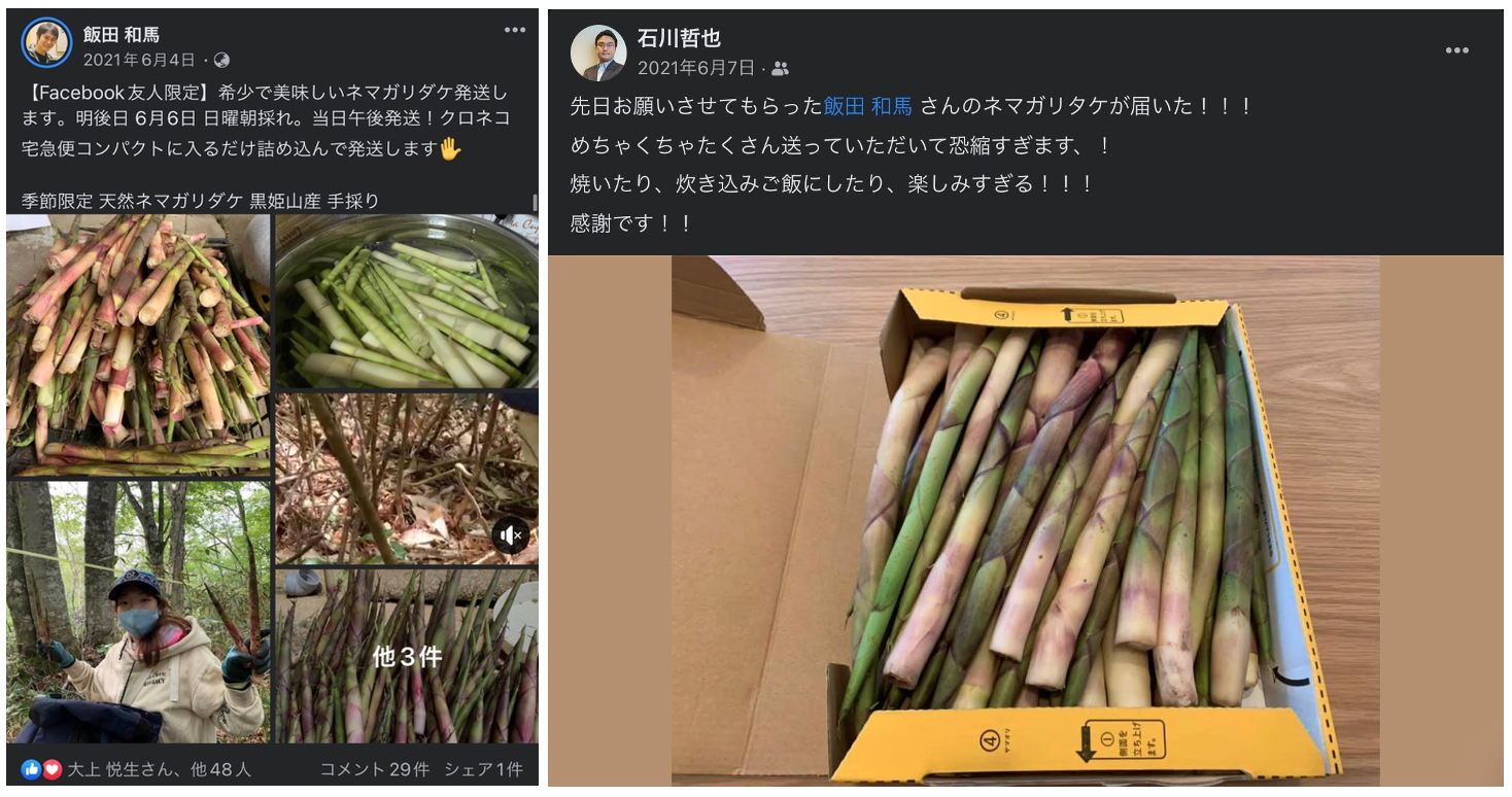 2021年には実際にどなぽん古民家に宿泊、テントサウナ体験、信濃町産ヤングコーンやネマガリダケを発送してお届けしたりなど、私達のまわりの方々に体感し食べていただき喜びの声をいただいておりますので、一部抜粋してお届け致します(投稿者の許可を得て掲載しております)